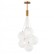 Clusters of glass globes in various sizes and color are suspended from a central point and burst outward. Configurations include a 4-Light, 9-Light, and 12-Light cluster and can be mounted close to the ceiling or included down rods to extend the height. Ch