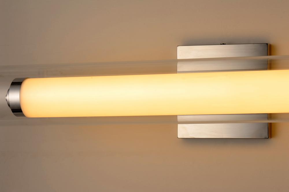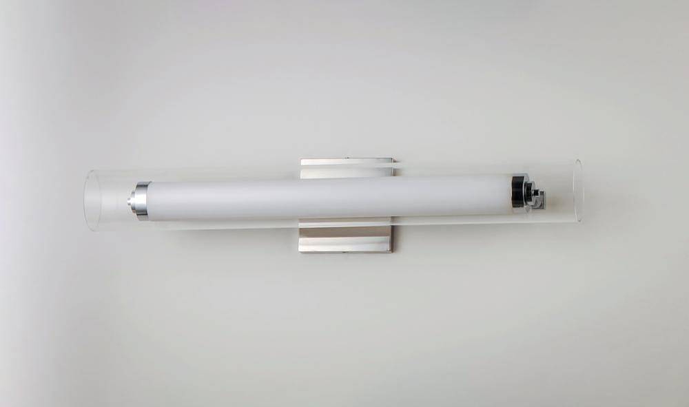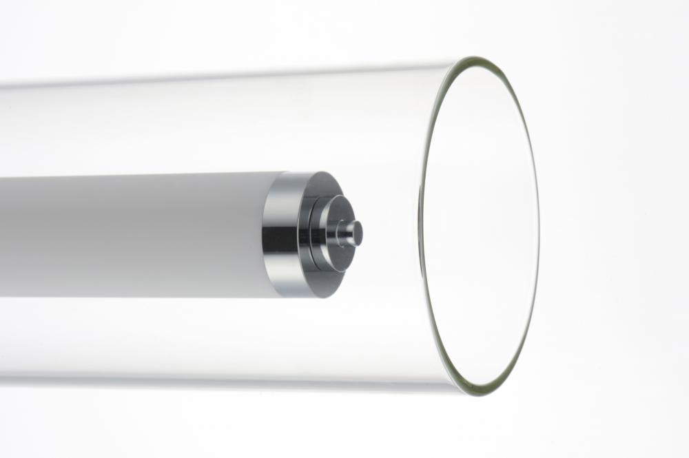 Clear glass outer tube encases a white acrylic inner tube capped with polished Chrome caps creates this clean contemporary design. Powered by high output LED which is nicely diffused make this collection suitable for both residential and commercial applica