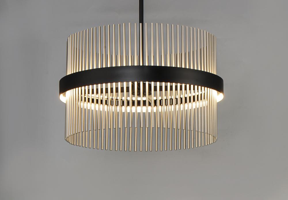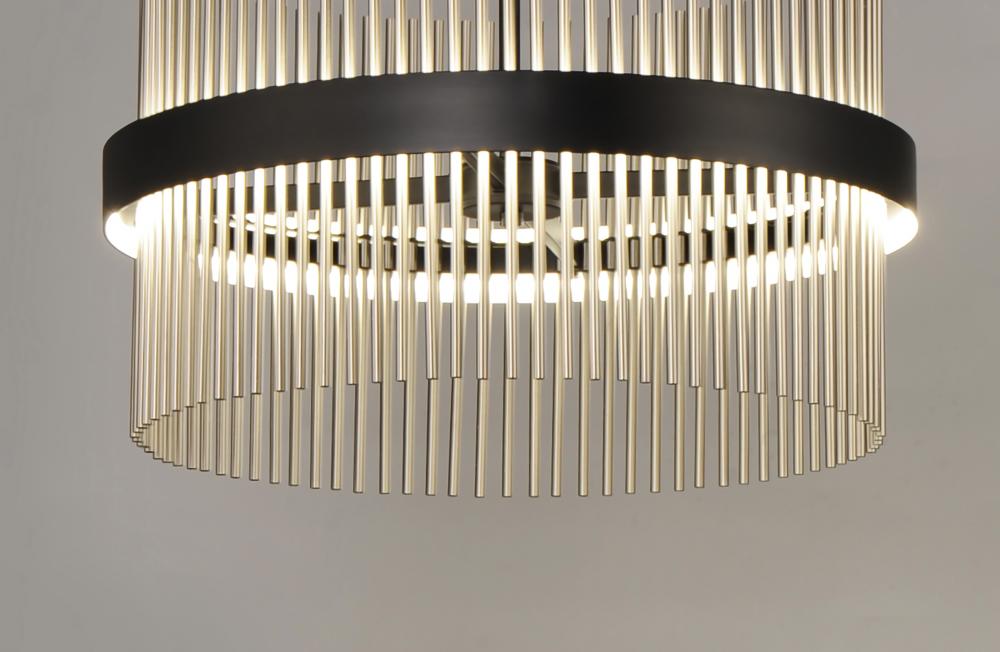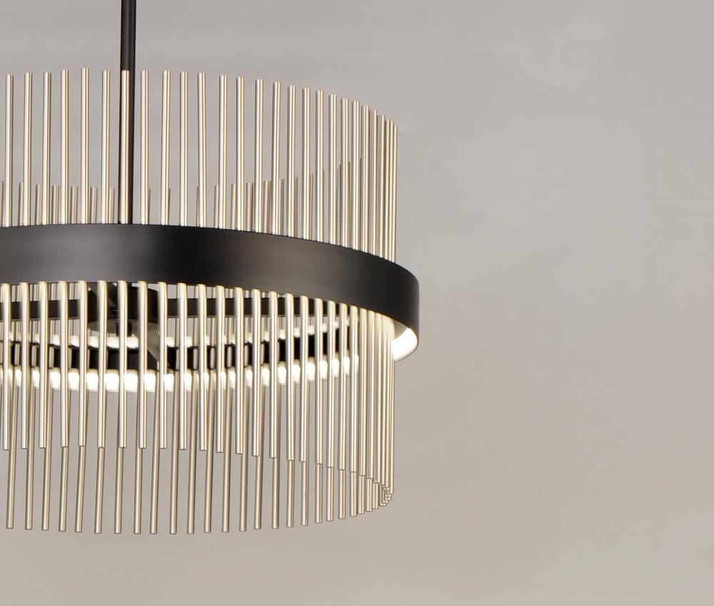 Wide bands of Matte Black metal supports an evenly spaced row of thin tubing finished in your choice of Satin Brass, Satin Nickel or a combination of the two. The stylish design is connected by WiZ that enables the lighting's White Ambiance between 270