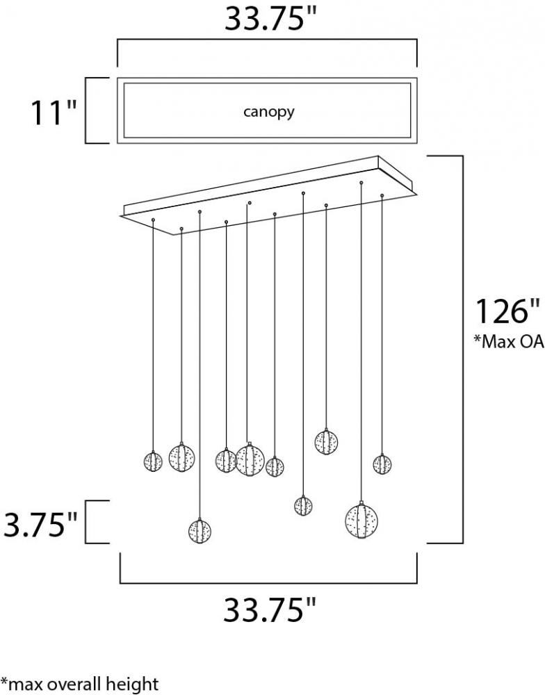 Bubble glass balls of various sizes are supported by adjustable cables for a wide variety of designs. The glass balls are illuminated by replaceable LED bulbs and are fully dimmable.