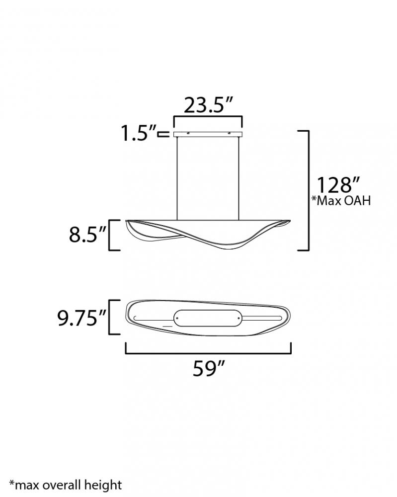 An undulating shape softly curls along its center to create an organic form constructed of a single panel of transparent acrylic. Further enhancing the form is the captivating effect of the frosted band around the borders and the patterned etching on the a