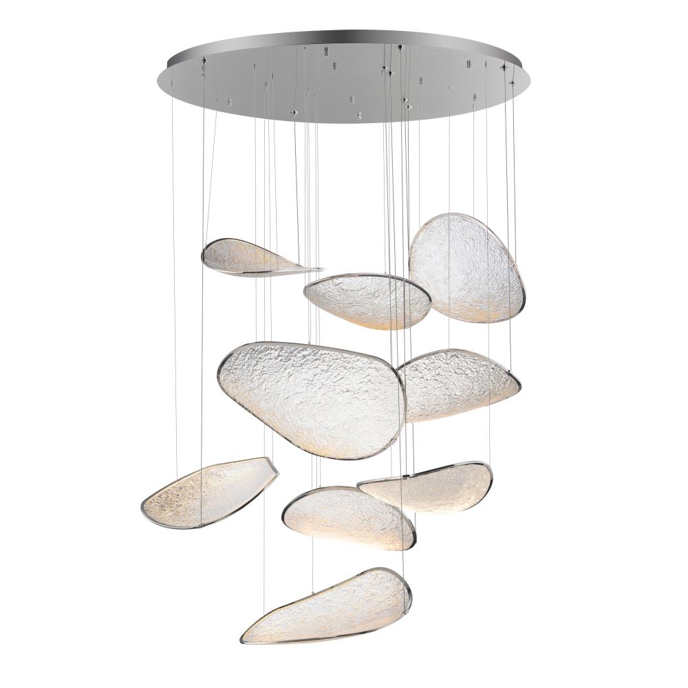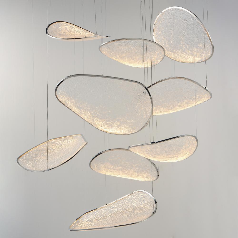 A triumph of scale, craft, and light, Moonscapes transforms celestial inspiration into a breathtaking installation. Monumental in form yet ethereal in presence, each irregularly shaped panel evokes the cratered terrain of the lunar surface with dramatic te