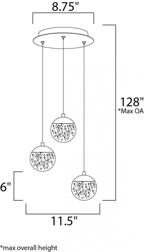 We took this popular collection and made it better. We took the xenon bulb out of the middle and enclosed a LED module in the cast Polished Chrome cap that supports the clear bubble glass balls. The glass screws into the cap so there are no visible screws