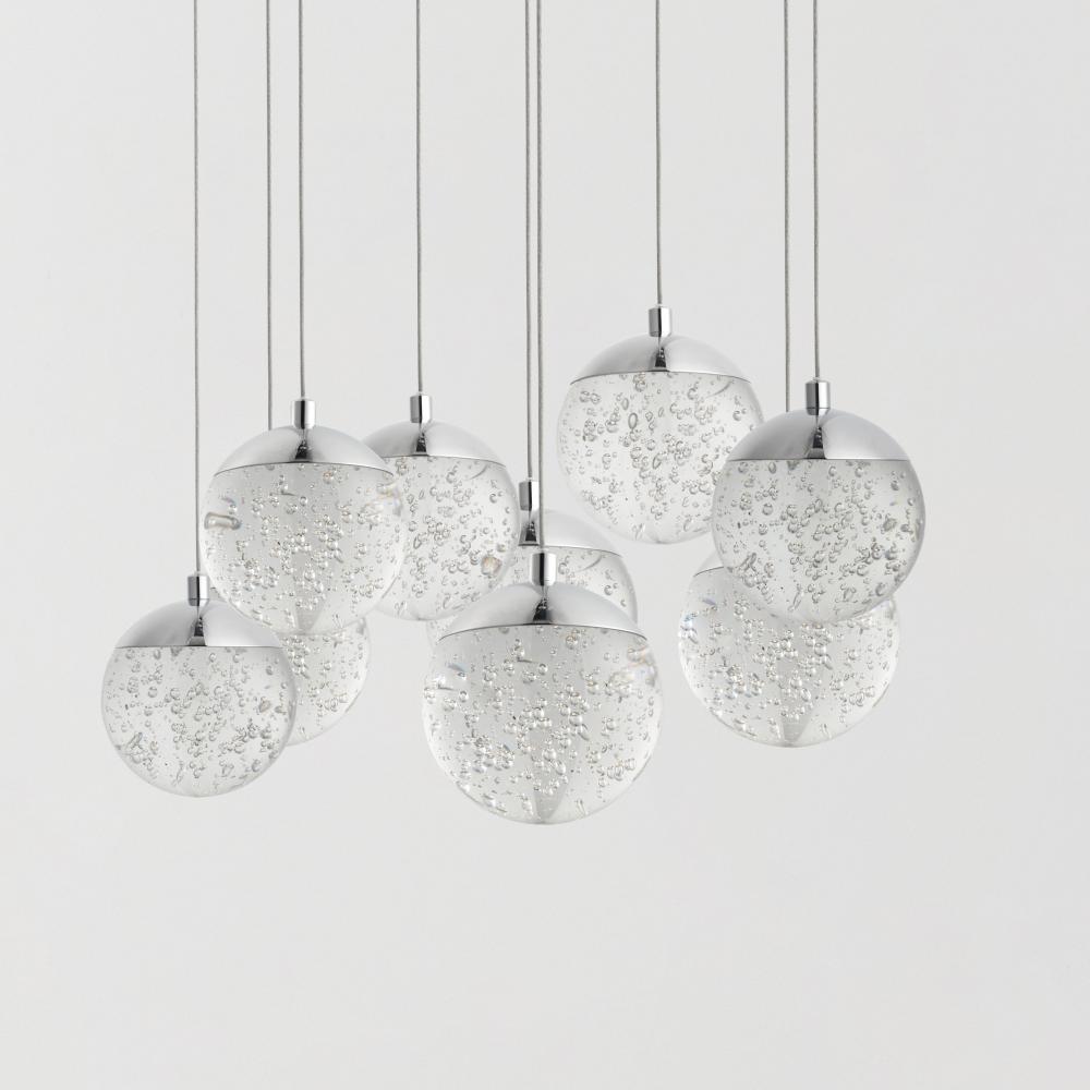 We took this popular collection and made it better. We took the xenon bulb out of the middle and enclosed a LED module in the cast Polished Chrome cap that supports the clear bubble glass balls. The glass screws into the cap so there are no visible screws