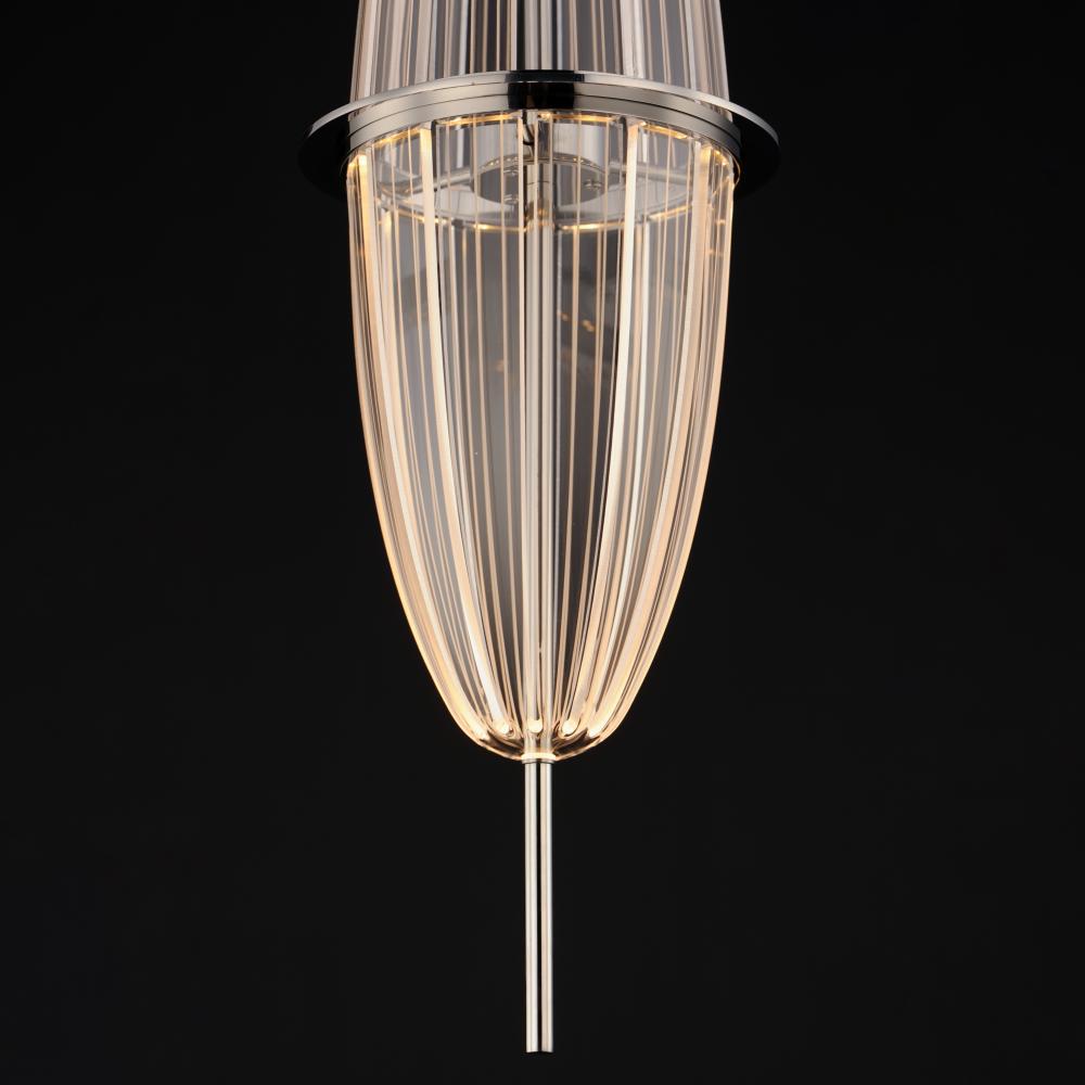 A arrangement of stainless steel and light guided acrylic form elongated rhombus shapes discreetly lit by LED. On the larger size pendants an additional aircraft cable kit is provided so that you can mount the pendants either vertically or horizontally at