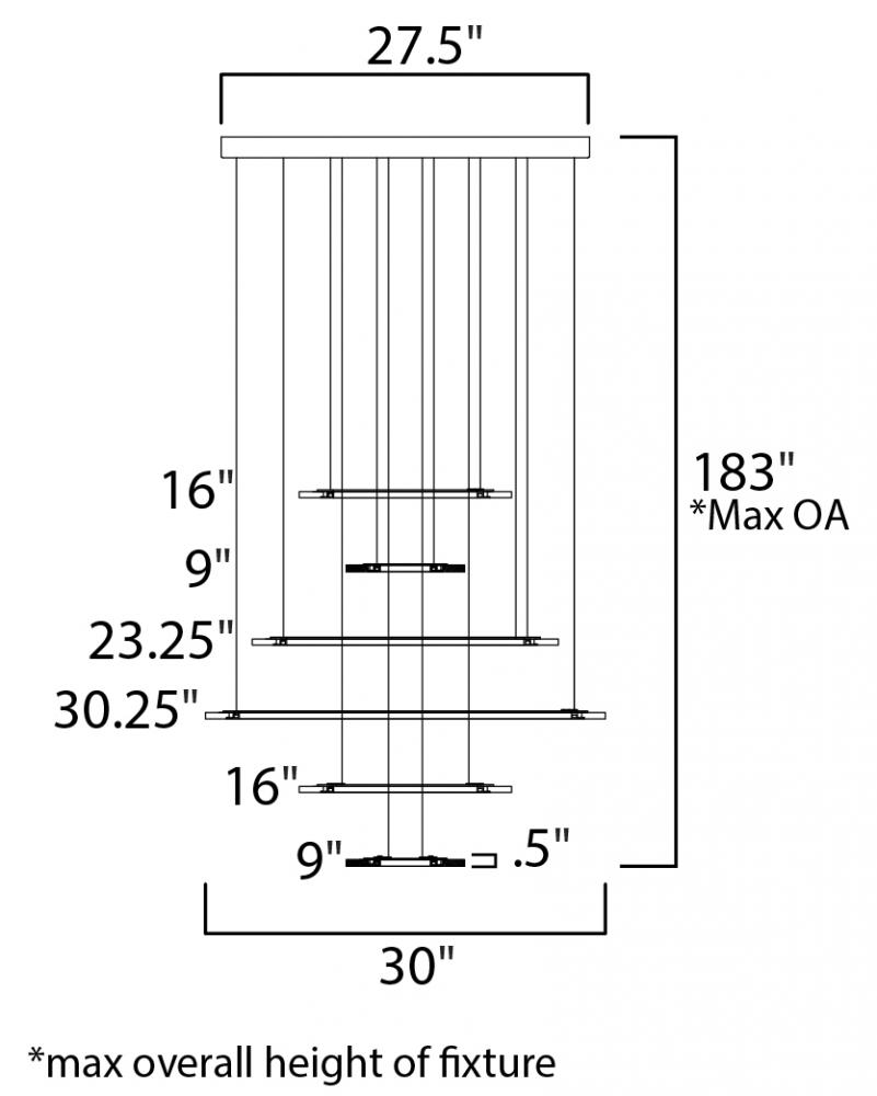 A new variation of a very popular series with many different configurations many of which are large scale for commercial applications. Metal rings of Matte Silver support horizontal acrylic diffusers which glow when illuminated by dimmable LED.