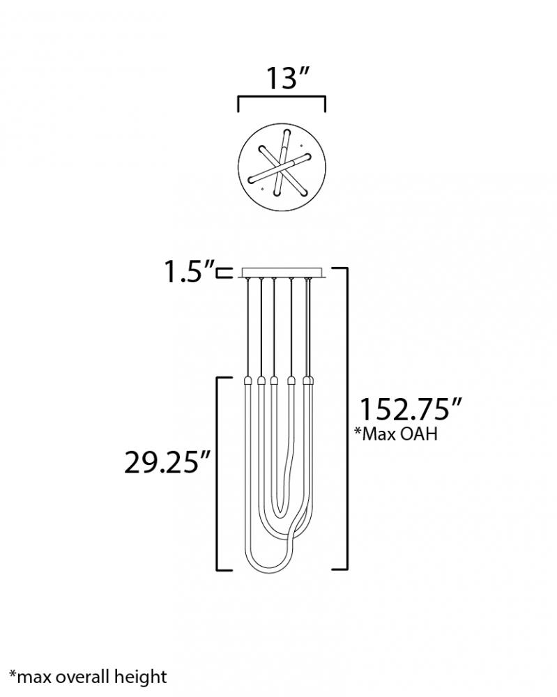 Sweeping matte white acrylic tubes encase an omnidirectional LED light source, arranged in abstract configurations inspired by solar flares. Minimal in composition yet dramatic in form, the Soleil collection offers a striking lighting solution. Available i
