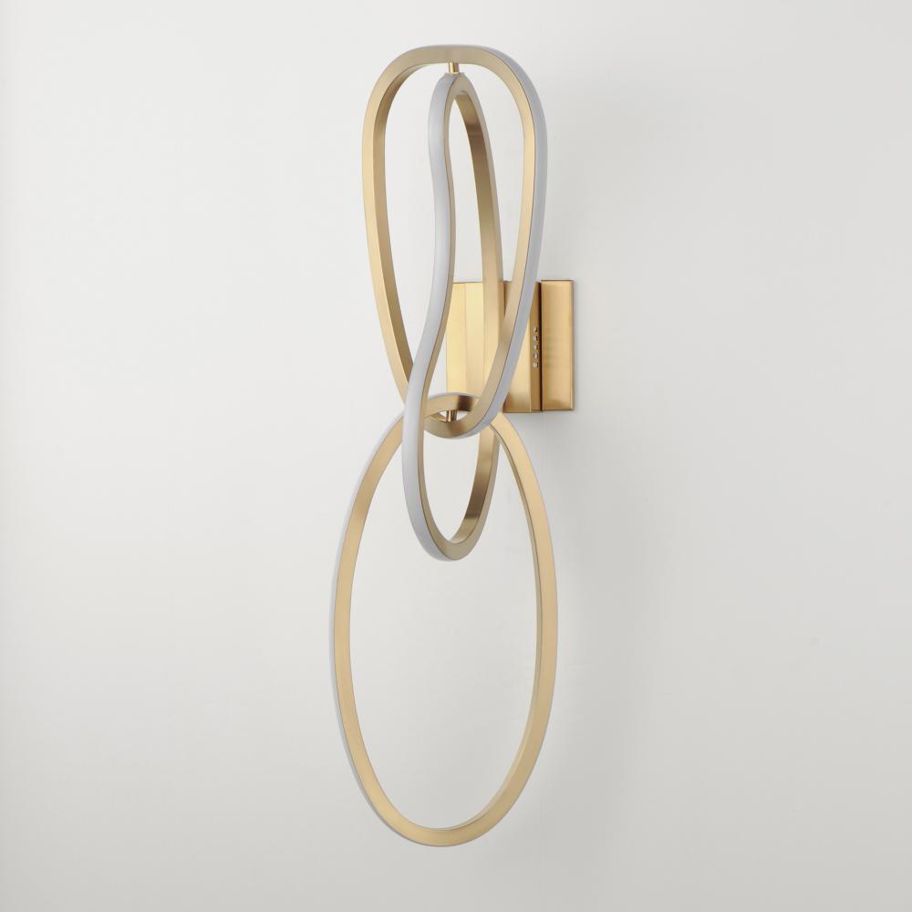 Abstract shapes of stainless steel are finished in Brushed Champagne or Black Chrome and intersect to create an intriguing sculpture of light. Unity provides both art and illumination for those searching for a unique lighting piece.