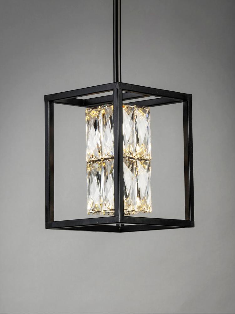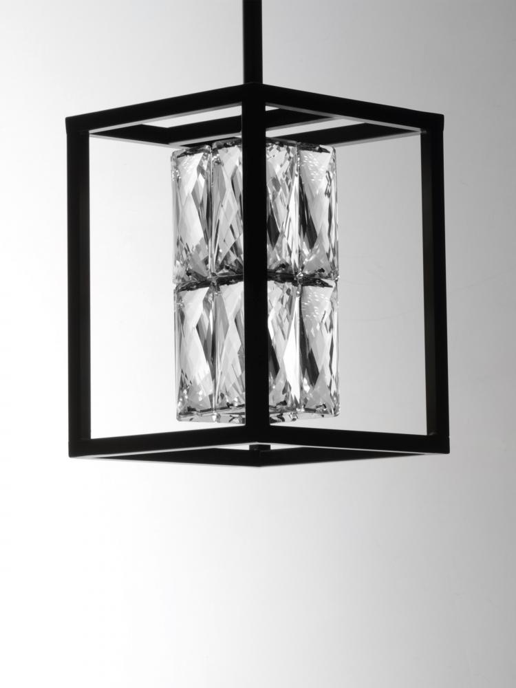 Rectangular Beveled Crystals are banded together to form soft square cylinders which are illuminated by LED that creates a brilliant lighting effect. Some items include metal chassis of Black which frame the crystal for a beautiful silhouette.