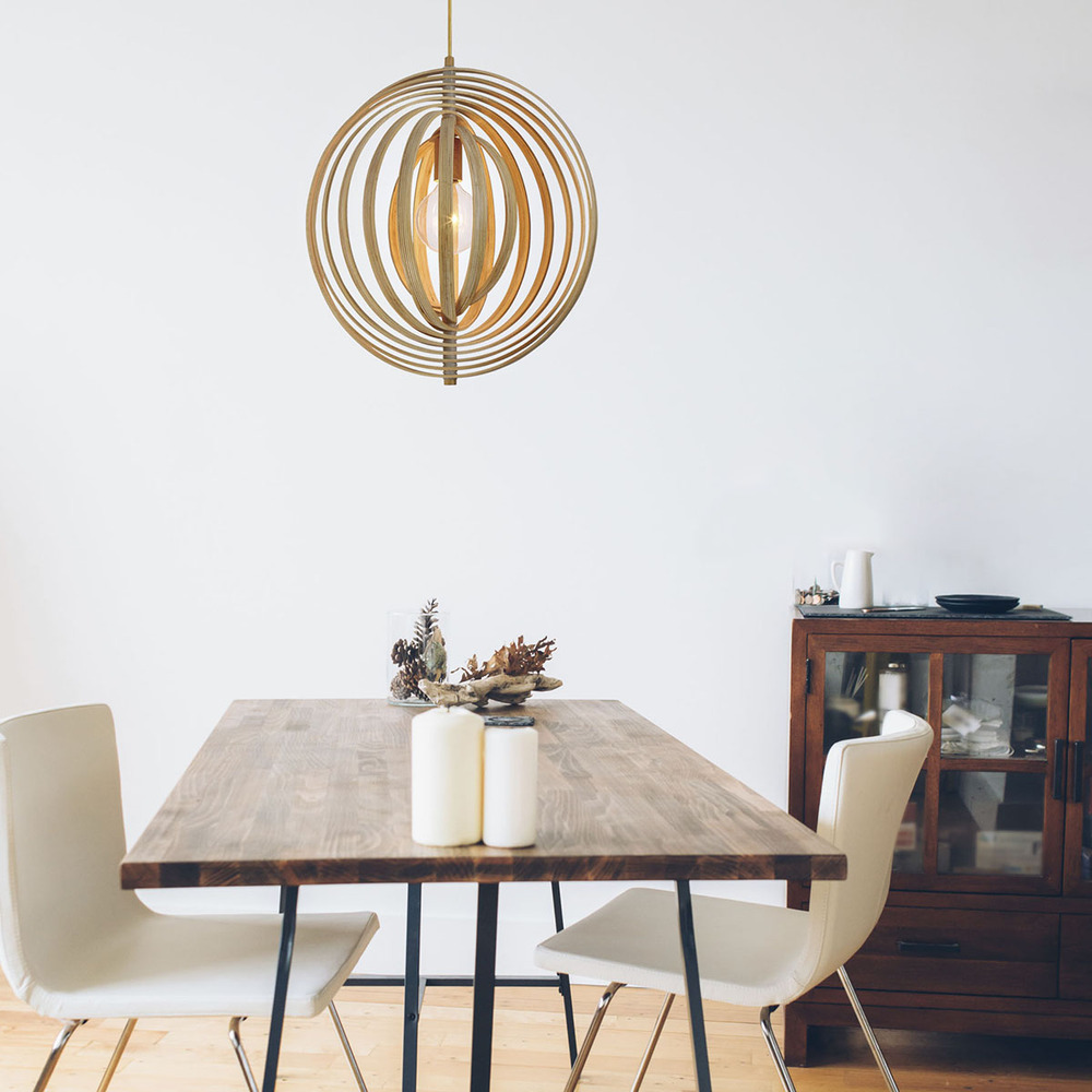 Adjustable wood rings encase ambient lighting for a contemporary design inspired by nature. The rings can be formed into any configuration for a truly one-of-a-kind piece.
