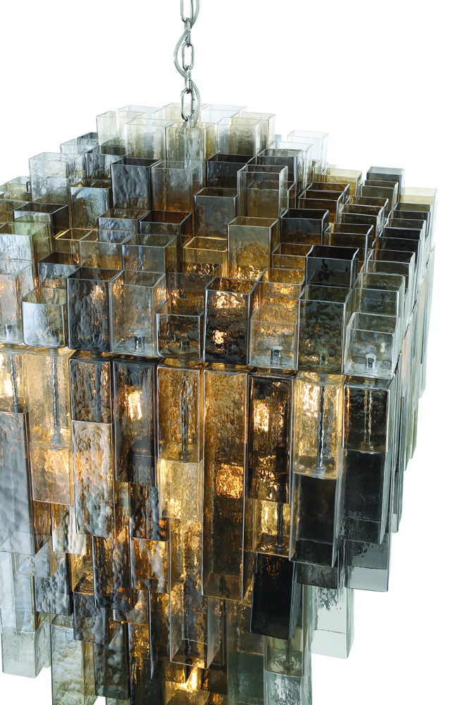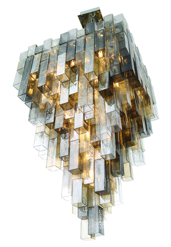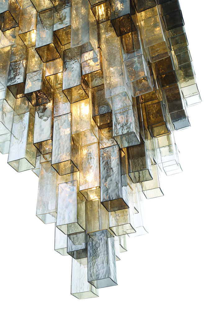 A series of stepped square balusters are the backbone of a staircase; adding grace and strength to a functional element in a building. Using this same tiered visual, Altesa dresses square frames with elongated square tubes of glass. The varying lengths, tones and densities of glass influence the depth and color of light, presenting a mesmerizing display in grand proportions.