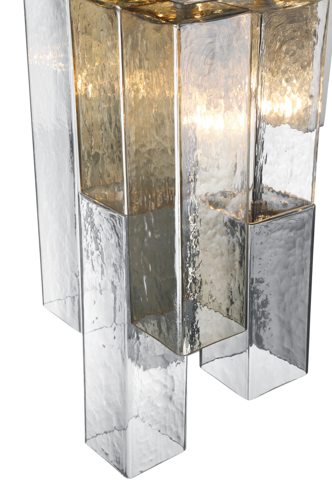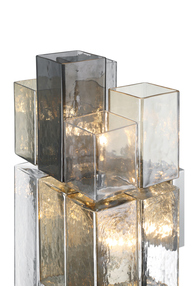 A series of stepped square balusters are the backbone of a staircase; adding grace and strength to a functional element in a building. Using this same tiered visual, Altesa dresses square frames with elongated square tubes of glass. The varying lengths, tones and densities of glass influence the depth and color of light, presenting a mesmerizing display in grand proportions.