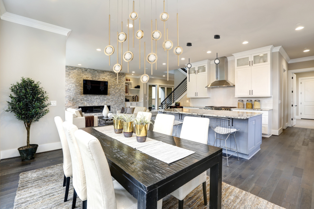 Various sized anodized rods suspend vertically in black or gold finishes. Each rod is furnished with a clear seeded glass orb that perfectly sits within an anodized ring.