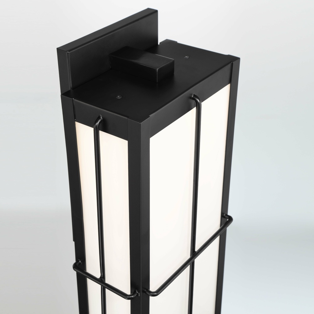 A delicate, rich black metal frame encases four opal glass panels, reminiscent of the shape of a bento box. This fixture emits a soft even glow for bright yet approachable illumination.