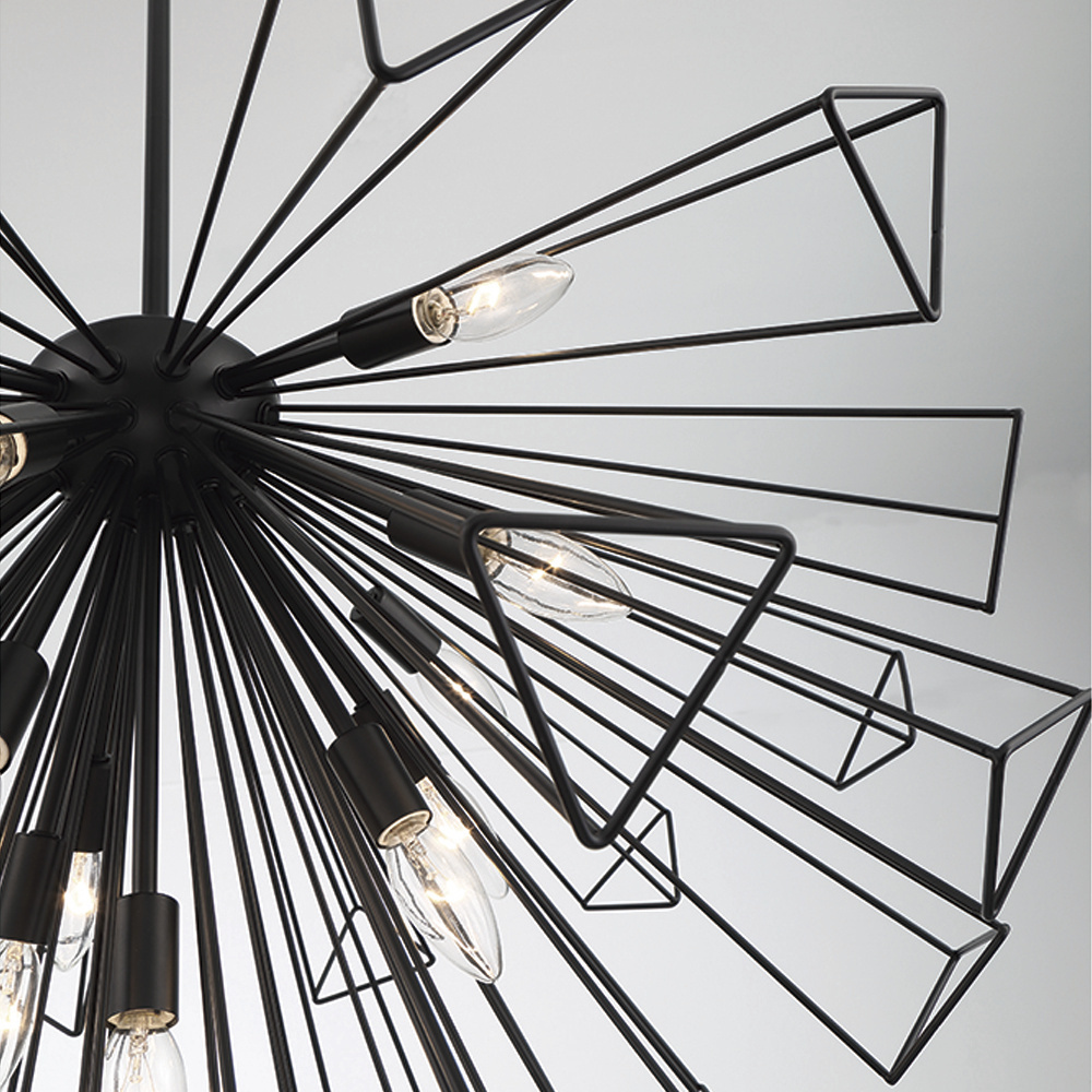 The Dendelio collection puts a modern take on the well-loved sputnik design. Emulating the skeletal outline of a dandelion, each framework creates a strong geometric structure. Make a splash in either black or gold with this real show stopper.