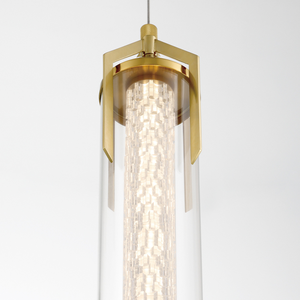 A salute to Raymond Loewy. Known as the ‘Father of Industrial Design’, the Espada collection pays tribute to modest design details from the 50’s era. The “tail fin” end caps capture the unique and proprietary CRYSTAL PITCHTM LED lamping, refracting light through the center of the glass cylinder.