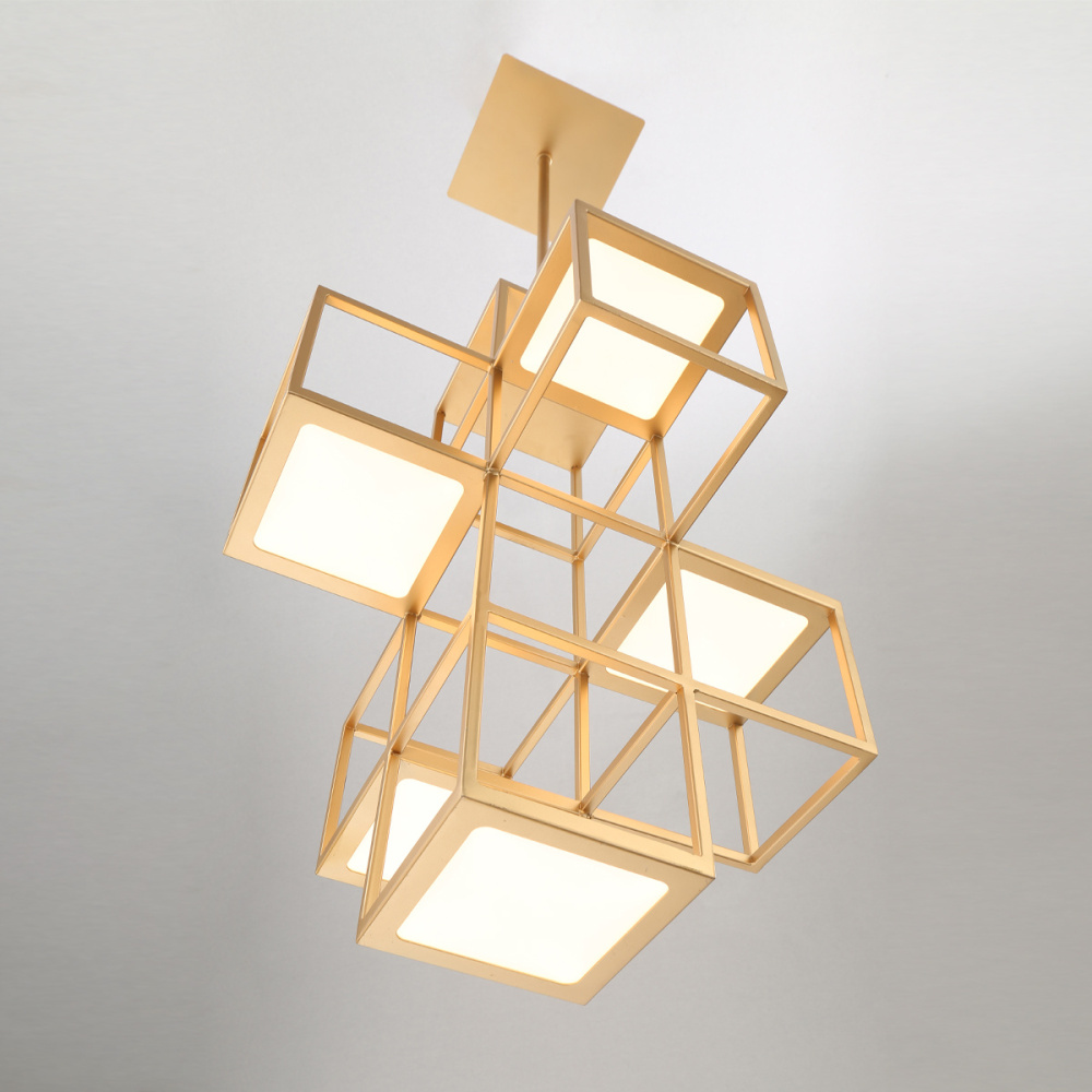 Inspired by shadow box wall art, multiple cubes are positioned in dimensional patterns and illuminated by LED panels to create a dramatic visual effect. The strategically placed direct and indirect light sources illuminate up and down for even more visual interest. The Ferro collection can bring its modern design to a variety of rooms with available chandelier, pendant, flushmount and wall sconce options.