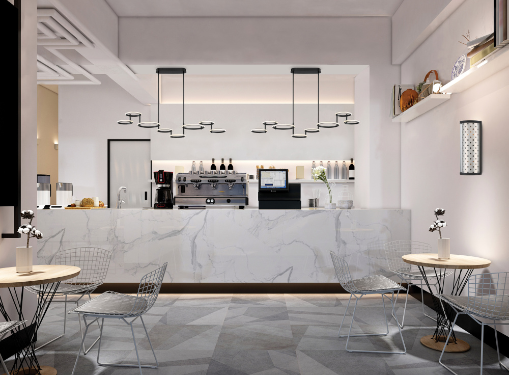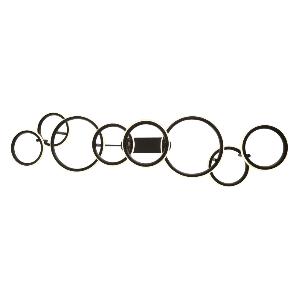 A whimsical display of halos pleasantly stacked together creates a layered form. The bright illumination is offset by a dark black finish for a strikingly brilliant piece. An interesting take on the simple halo, the Giro collection elevates this style into a more decorative element.