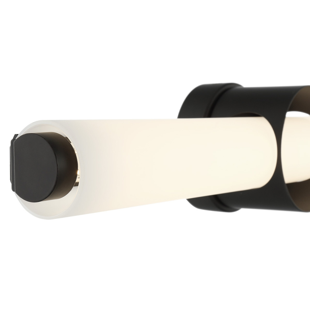 Opal white glass weaves through a hollowed out drum creating a unique support structure. The open-faced drum creates a delicate ring detail that elevates this simple design with style and panache.