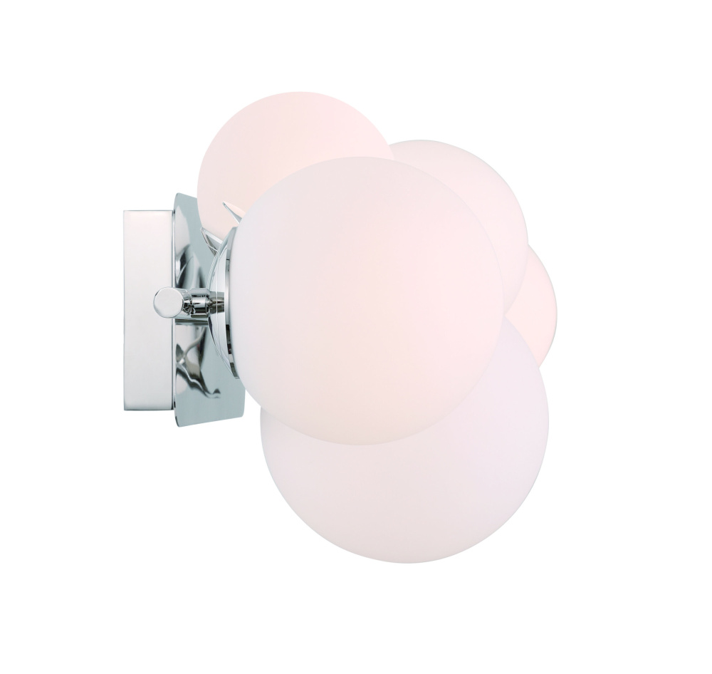 The playful way in which bubbles rise in a glass of fine champagne has been interpolated in Vine. “Bubbles” of opal glass and cupped round plates dance along a supportive rail to present a cheerful linear wall lighting.
