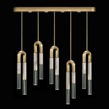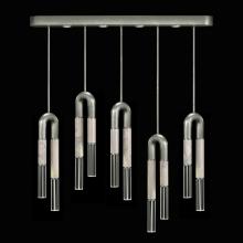 Linear five-drop pendant featuring soft curves and the inclusion of metals carefully handcrafted to transition from parchment to magnificent glass, culminating in a stunning beam of light. Suspended by connectable rod segments for a customizable length. Available in a wide range of exquisite finishes, including our five standard finishes and our newest Soft Ombre Bronze & Soft Ombre Silver, with the choice of two parchment colors, Charcoal and Smoke. Also available with no parchment.