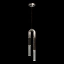 Single drop pendant featuring soft curves and the inclusion of metals carefully handcrafted to transition from parchment to magnificent glass, culminating in a stunning beam of light. Suspended by connectable rod segments for a customizable length. Available in a wide range of exquisite finishes, including our five standard finishes and our newest Soft Ombre Bronze & Soft Ombre Silver, with the choice of two parchment colors, Charcoal and Smoke. Also available with no parchment.