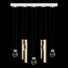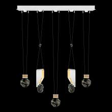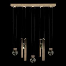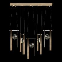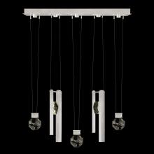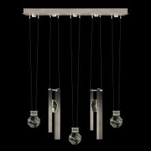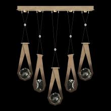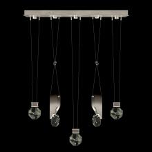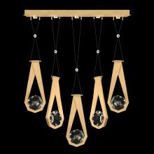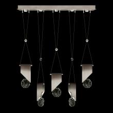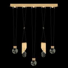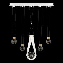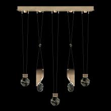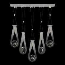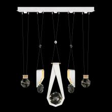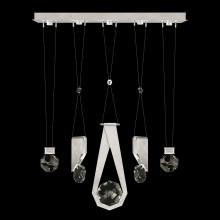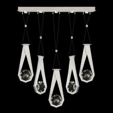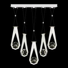 Five-drop linear pendant inspired by the sophistication and versatility of necklace charms. This collection empowers you to curate your unique piece with its five exquisite finishes and four distinct charm designs meticulously crafted using opulent faceted optic crystal. Each charm shines like a gem, captivating attention. Whether you desire the delicate dance of light reflecting off the crystal or the functional illumination from above, Aria's integrated LED lights bring your vision to life.