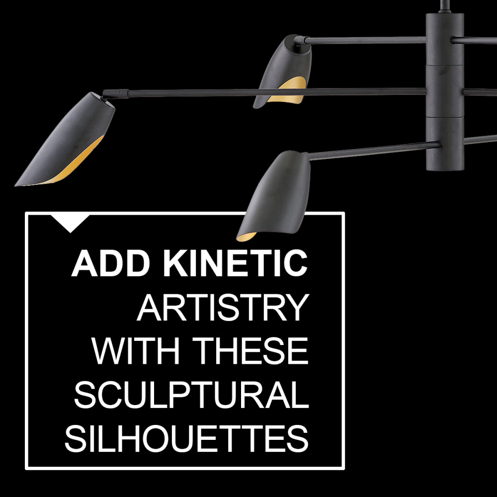 Bowery draws its inspiration from kinetic artistry. The thrilling sculptural silhouettes are evocative of free-moving mobiles from the early 20th century and inject any space with intrigue. The contemporary LED chandeliers and sconces feature pivoting arms and shades in two striking color combinations for maximum impact.