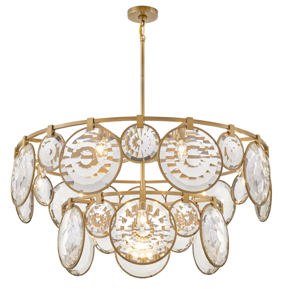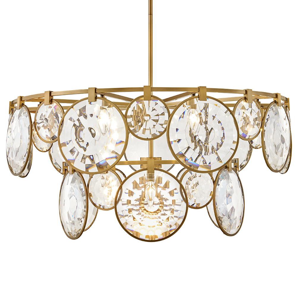 Nala is striking from any angle with a traditional silhouette and elegant eye-catching details. Multi-faceted, optic-crystal lenses surround the circular frame and attach with cast clips in Heritage Brass and Black finishes.