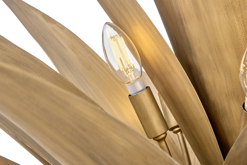 Agave uniquely blends form and function with its extraordinary hand sculpted, leafy layers. Inspired by the agave plant, this fountain-like silhouette captivates with a distinctive nature-inspired design brought to life in an eye-catching Burnished Gold finish.