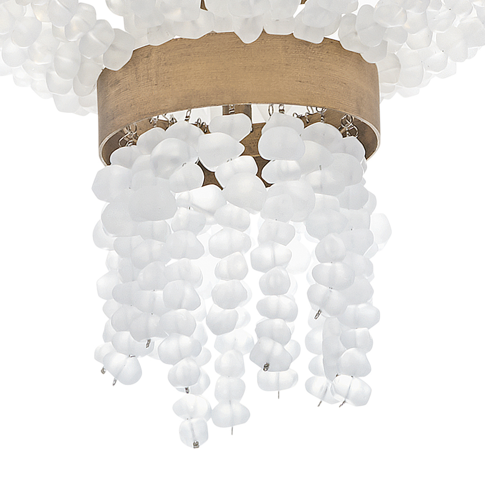 Dune's bohemian chic design showcases strands of soft sea glass combined with a Burnished Gold finish. The designs blend a sophisticated silhouette with organic elements inspired by sun and surf. Dune infuses any space with timeless, mesmerizing elegance.