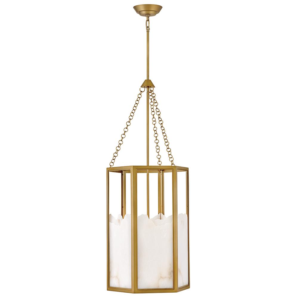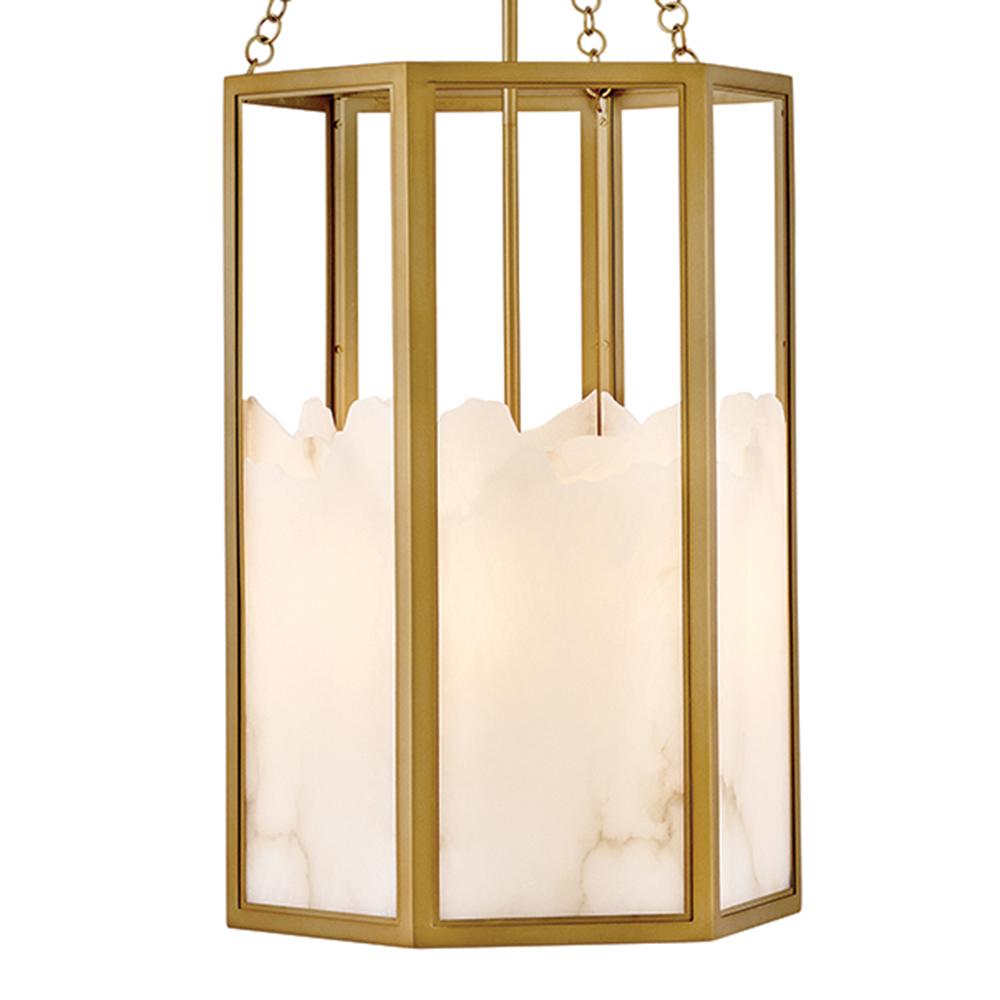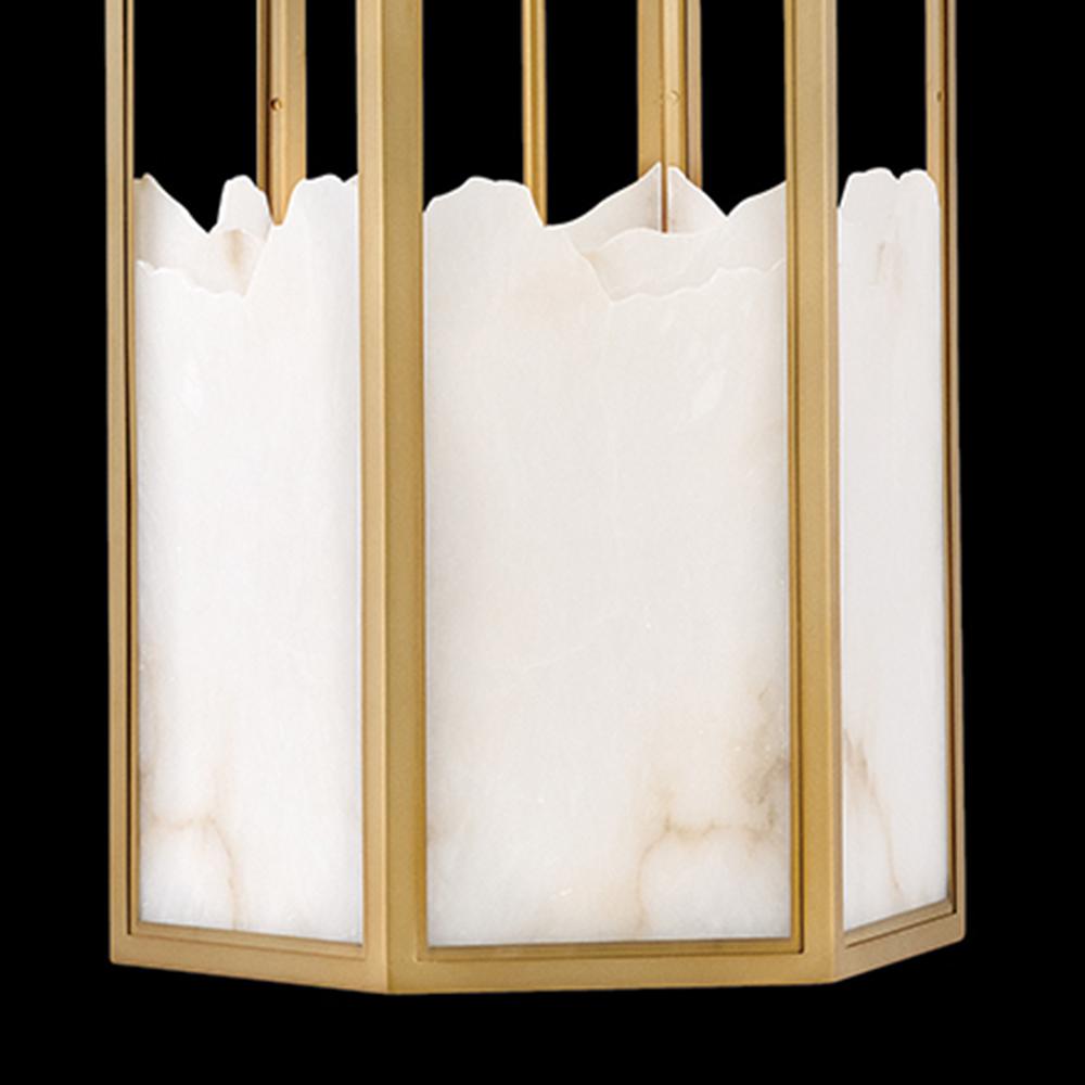 Inspired by Italian design, Valeta’s natural alabaster shade with jagged top edges is showcased by a geometric Lacquered Brass frame. Truly one-of-a-kind graining, color variations, and organically formed textures make each Veleta fixture genuinely unique.