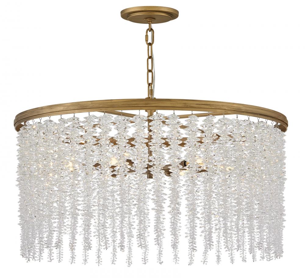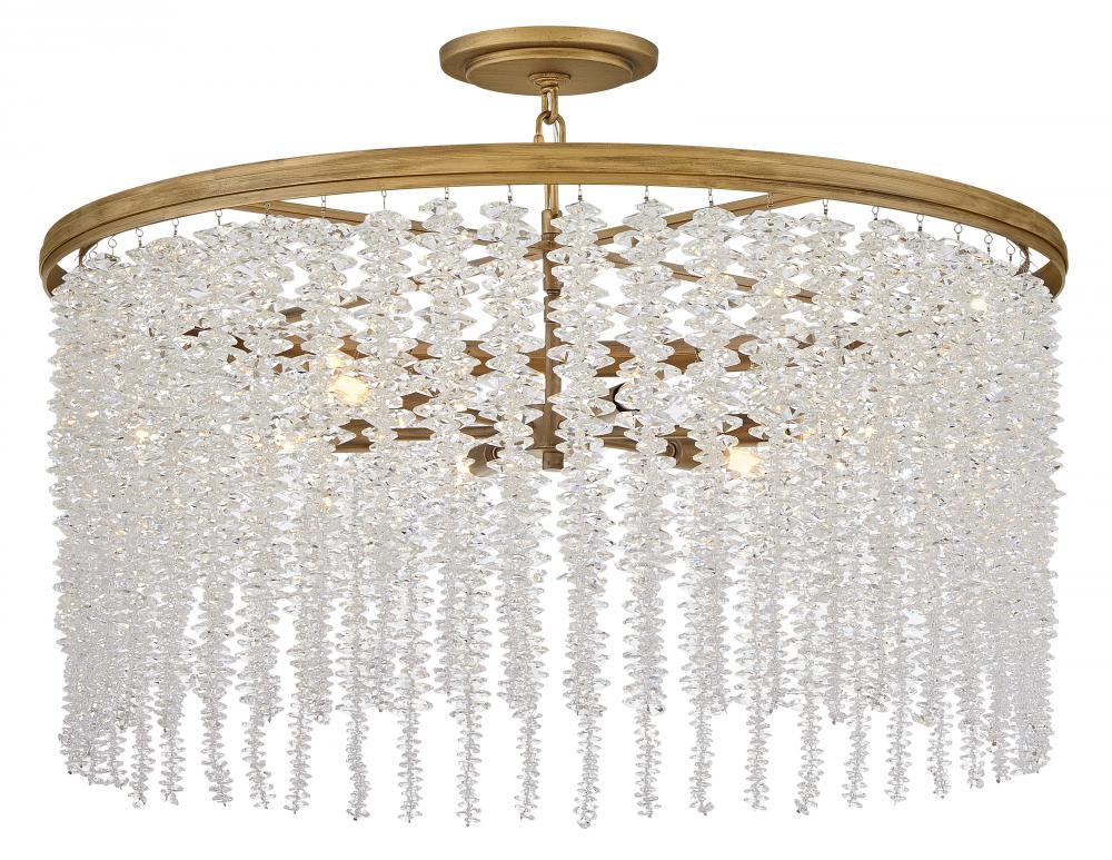 Dripping with glamour, Rubina’s magnificent shade is crafted from individually hung strands of sparkling crystal. A traditional tiered frame accentuates every beautiful refraction with its Burnished Gold finish.