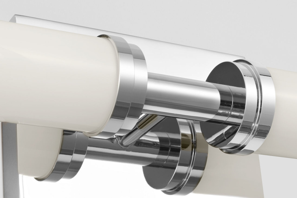 Dual cylindrical white glass diffusers for balanced, even illumination