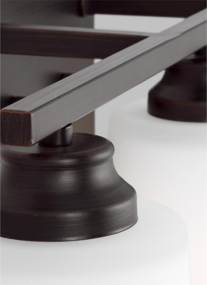Transitional fixture in bronze finish will complement bathrooms, powder rooms, bedrooms, and hallways