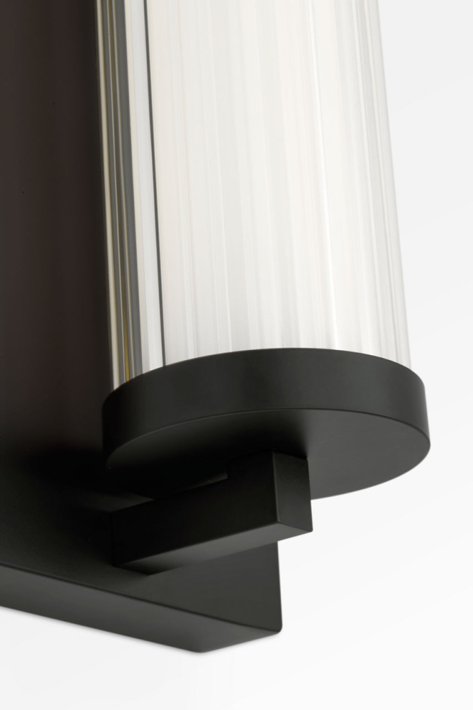 The Weston 22" Vanity combines linear symmetry with material depth, featuring a ribbed glass lens framed by a full-length metal backplate. Dedicated LED technology delivers efficient, ambient light while the textured diffuser enhances clarity and softens glare. suited for horizontal mounting in bathrooms and powder rooms where diffused illumination and visual structure are required.