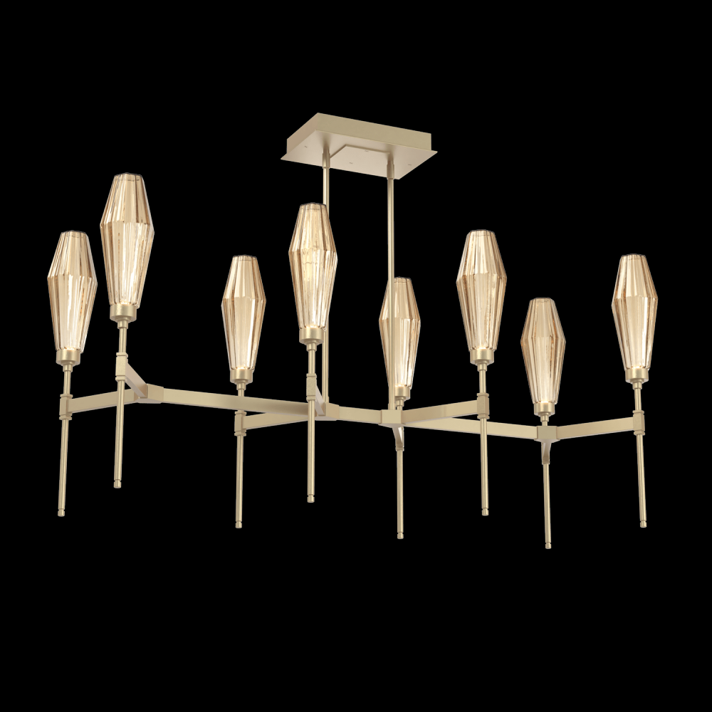 Aalto Linear Suspension - 48 - Gilded Brass - Optic Rib Blown Glass - Bronze - Threaded Rod (24,12 (2x),6,3) - LED - 2700K