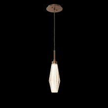 Aalto Pendant - 15 - Flat Bronze - Optic Rib Blown Glass - Amber - Cloth Braided Cord - LED - 2700K