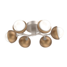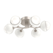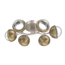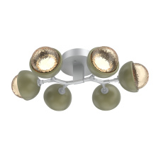 An intriguing ceiling light that nods to midcentury style, this versatile branch-style flush mount features six Cabochon sculptural fusions. Each is made of artisan blown crystal glass and polished stone or metalwork in a colorful selection of single and two-tone finishes.