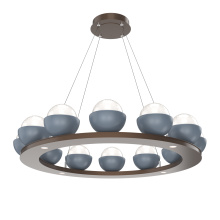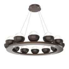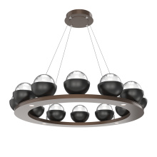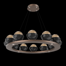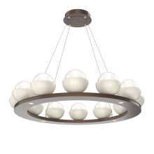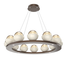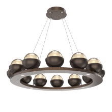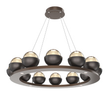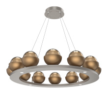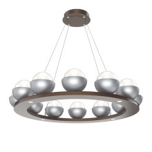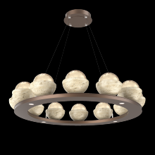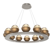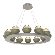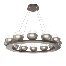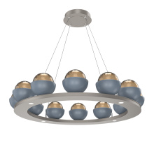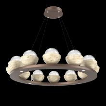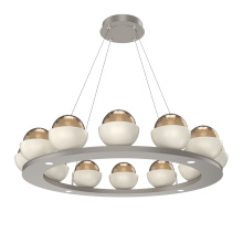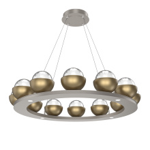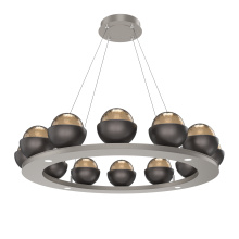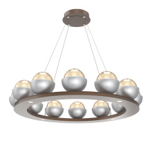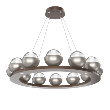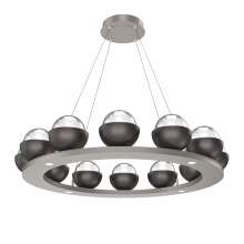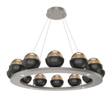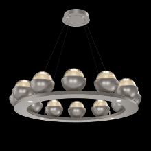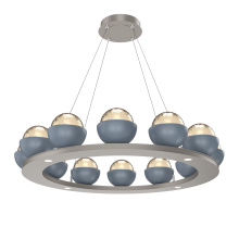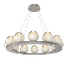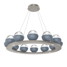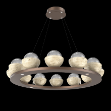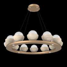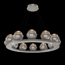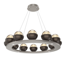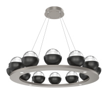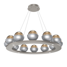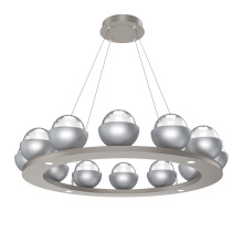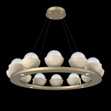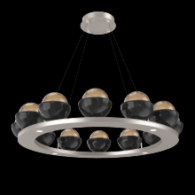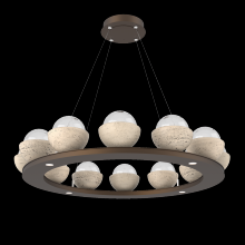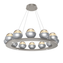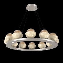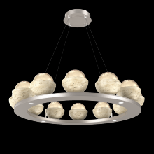 Cabochon 36" Platform Ring-Classic Silver-Clear Glass with Travertine-Stainless Cable-LED 2700K