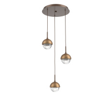 Cabochon 3pc Multi-Pendant-Burnished Bronze-Clear Glass with Black Marble-Cloth Braided Cord