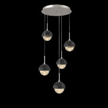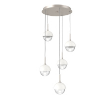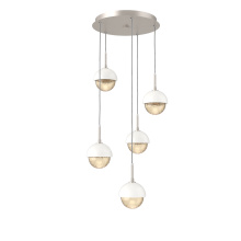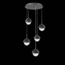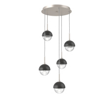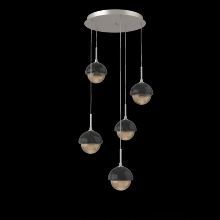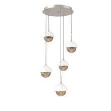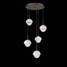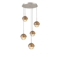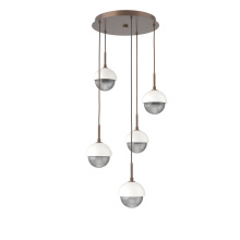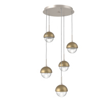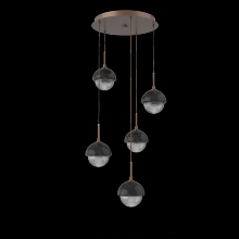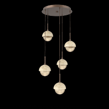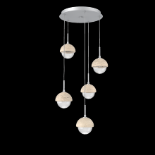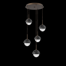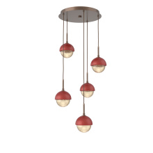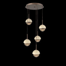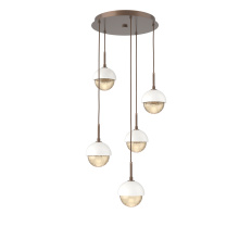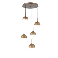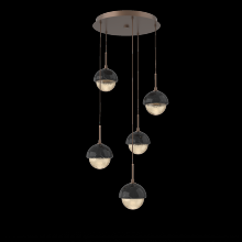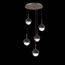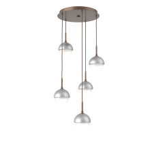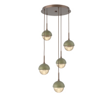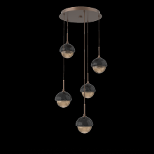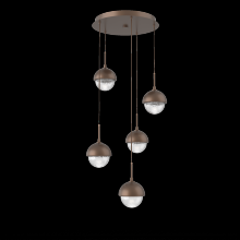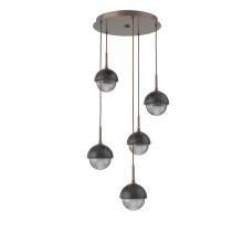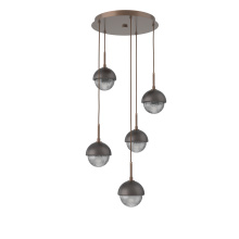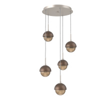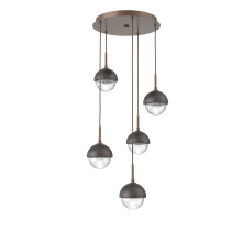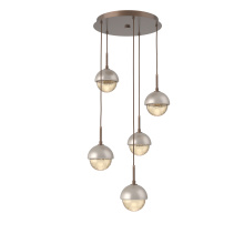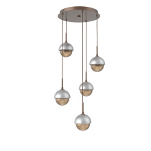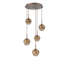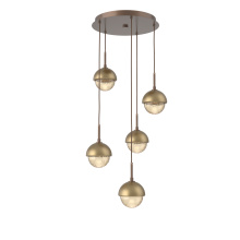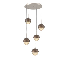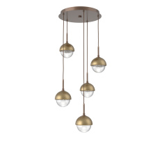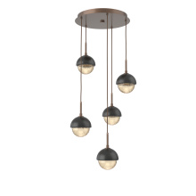 Cabochon 5pc Multi-Pendant-Burnished Bronze-Clear Glass with Travertine-Cloth Braided Cord-LED 3000K