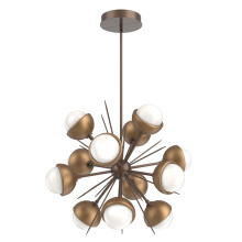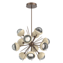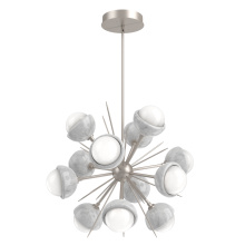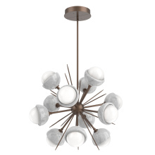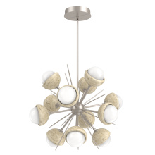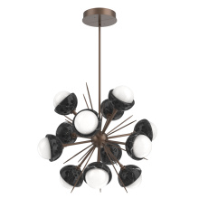 The Cabochon Starburst Chandelier elevates a familiar silhouette with a fresh modern update to the visual intrigue of this time-honored gemstone style. The sculptural fusion features artisan blown crystal glass and polished stone or metalwork in a colorful selection of single and two-tone finishes.