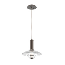 Cirrus Single Pendant - Medium-Flat Bronze-Clear Granite-Cloth Braided Cord-LED - 2700K