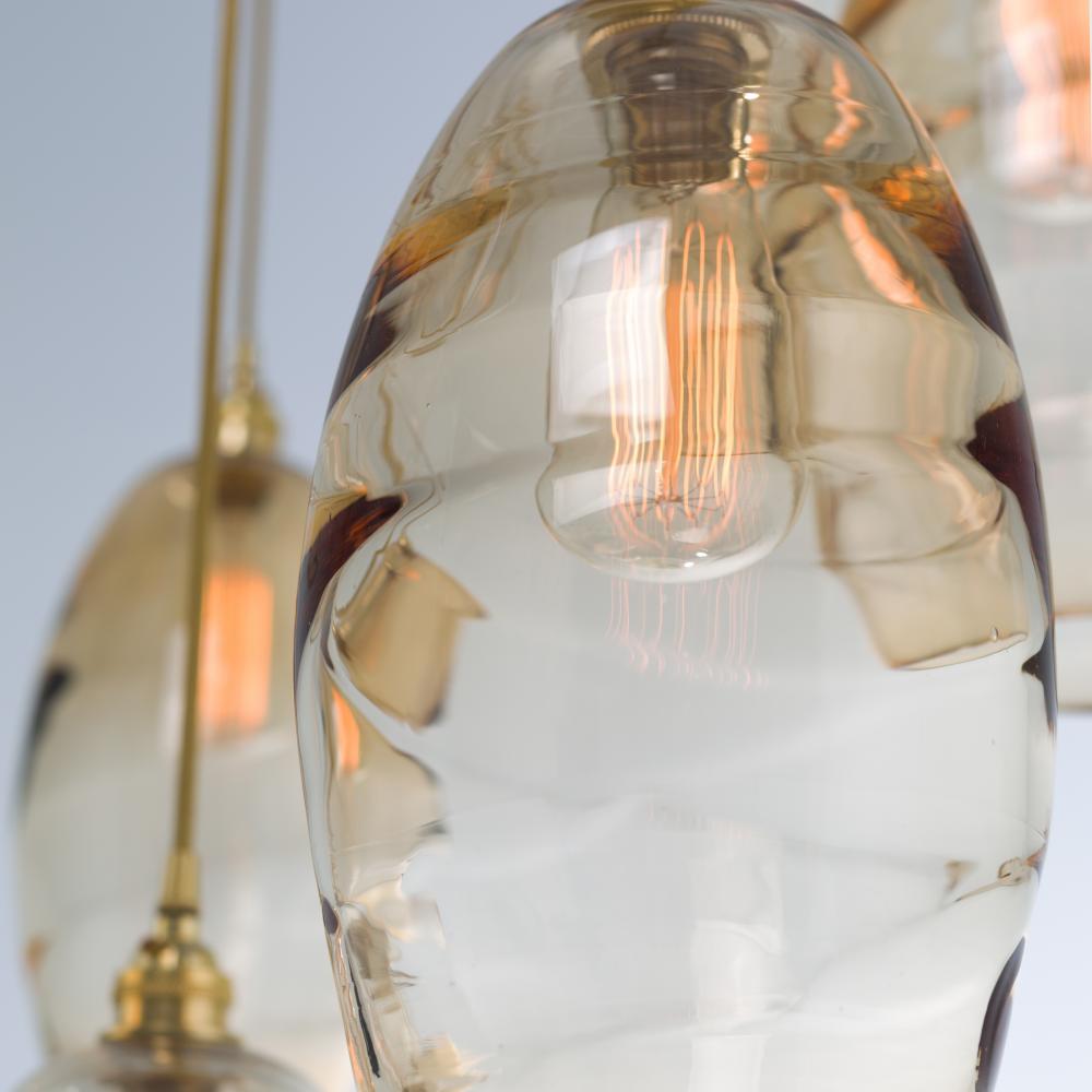 Ellisse Round Multi - Port - Matte Black - Amber Optic Blown Glass - Cloth Braided Cord - Incandescent E26 Socket