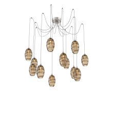 Ellisse Round 12pc Swag Multi - Pendant (copy) - Matte Black - Bronze Optic Blown Glass - Cloth Braided Cord - Incandescent E26 Socket