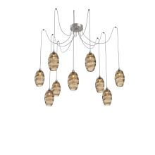 Ellisse Round 9pc Swag Multi - Pendant - Matte Black - Bronze Optic Blown Glass - Cloth Braided Cord - Incandescent E26 Socket