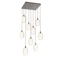 Ellisse Square Multi - Pendant - Flat Bronze - Bronze Optic Blown Glass - Cloth Braided Cord - Incandescent E26 Socket