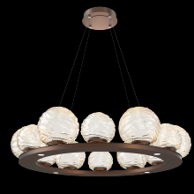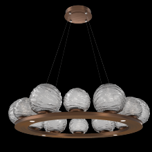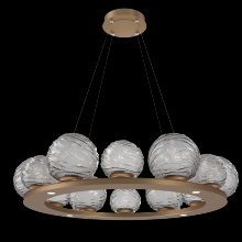 Gaia 36 - inch Platform Ring - Gilded Brass - Smoke Blown Glass - Stainless Cable - LED - 3000K