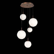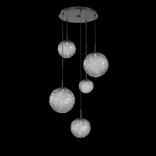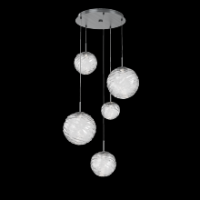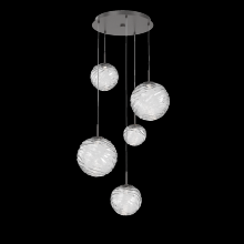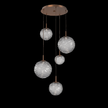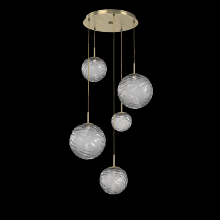 Gaia 5pc Round Multi - Pendant - Gilded Brass - Clear Blown Glass - Cloth Braided Cord - LED - 3000K